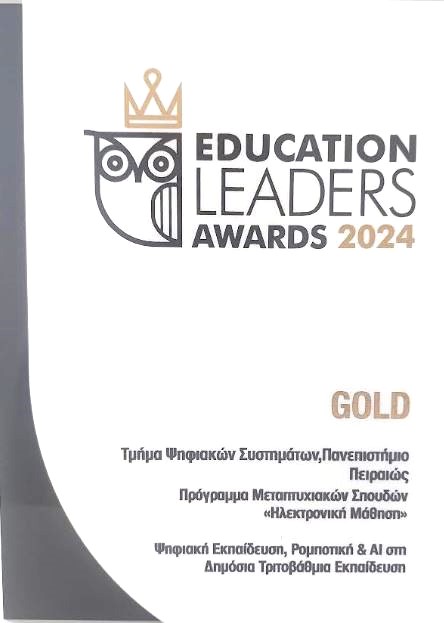 Το ΠΜΣ-ΗΜ έχει βραβευτεί με το Χρυσό Βραβείο στην κατηγορία «Ψηφιακή Εκπαίδευση, Ρομποτική και ΑΙ στη Δημόσια Τριτοβάθμια Εκπαίδευση» κατά την Τελετή Απονομής των Education Leaders Awards 2024, σε αναγνώριση της 20ετούς προσφοράς του στην μεταπτυχιακή εκπαίδευση νέων απόφοιτων ΑΕΙ και επαγγελματιών της εκπαίδευσης στο διαρκώς εξελισσόμενο πεδίο της Ψηφιακής Εκπαίδευσης.